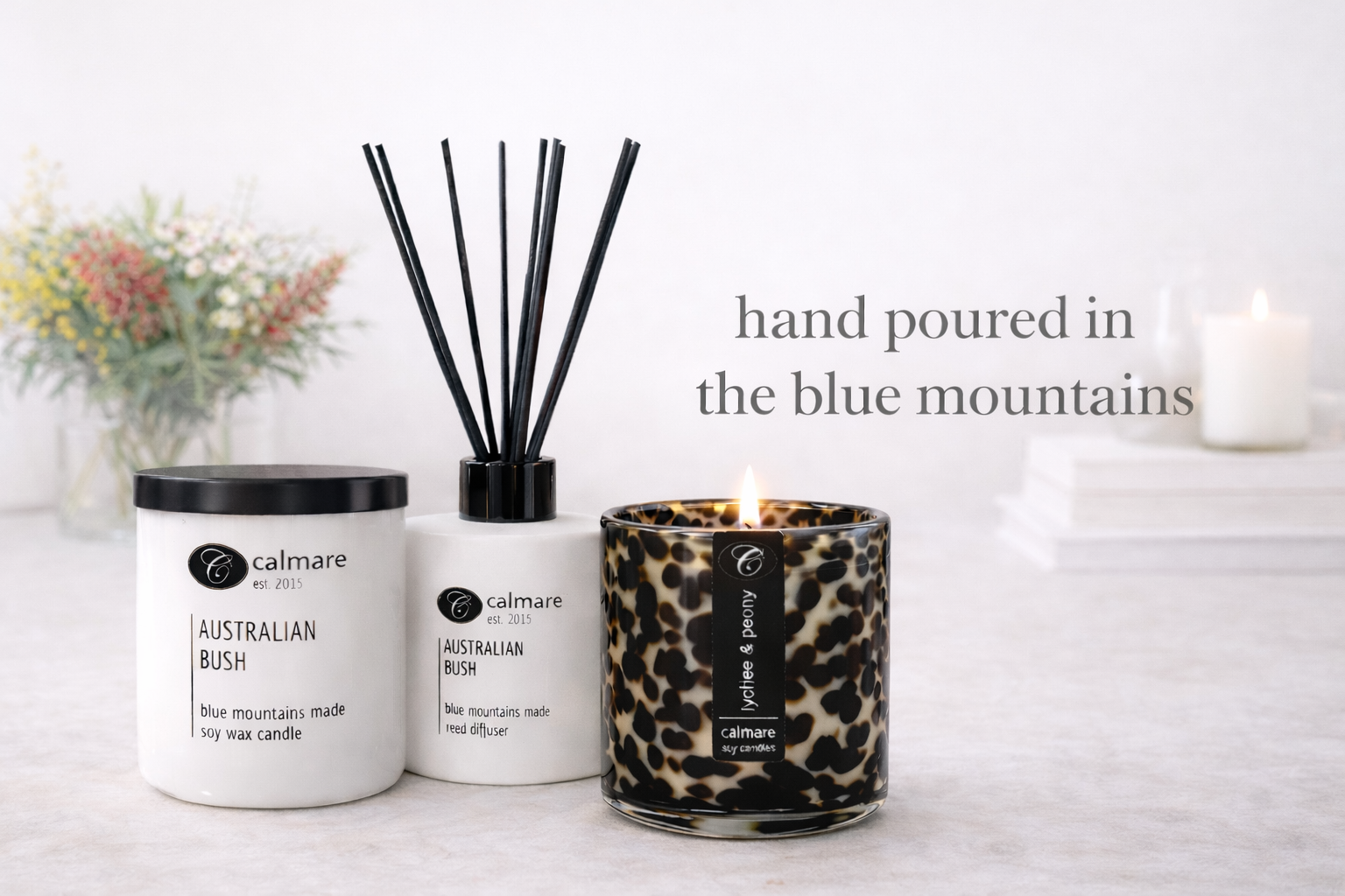 At Calmare Candles, we believe that a calm, soothing home is essential for well-being. Since 2015, we have been crafting hand-poured soy wax candles, melts, and diffusers that help transform your space into a serene sanctuary. Nestled in the heart of the beautiful Blue Mountains, our range is inspired by the natural beauty that surrounds us. Each product is thoughtfully created with the intention of bringing peace, calm, and relaxation to your home.