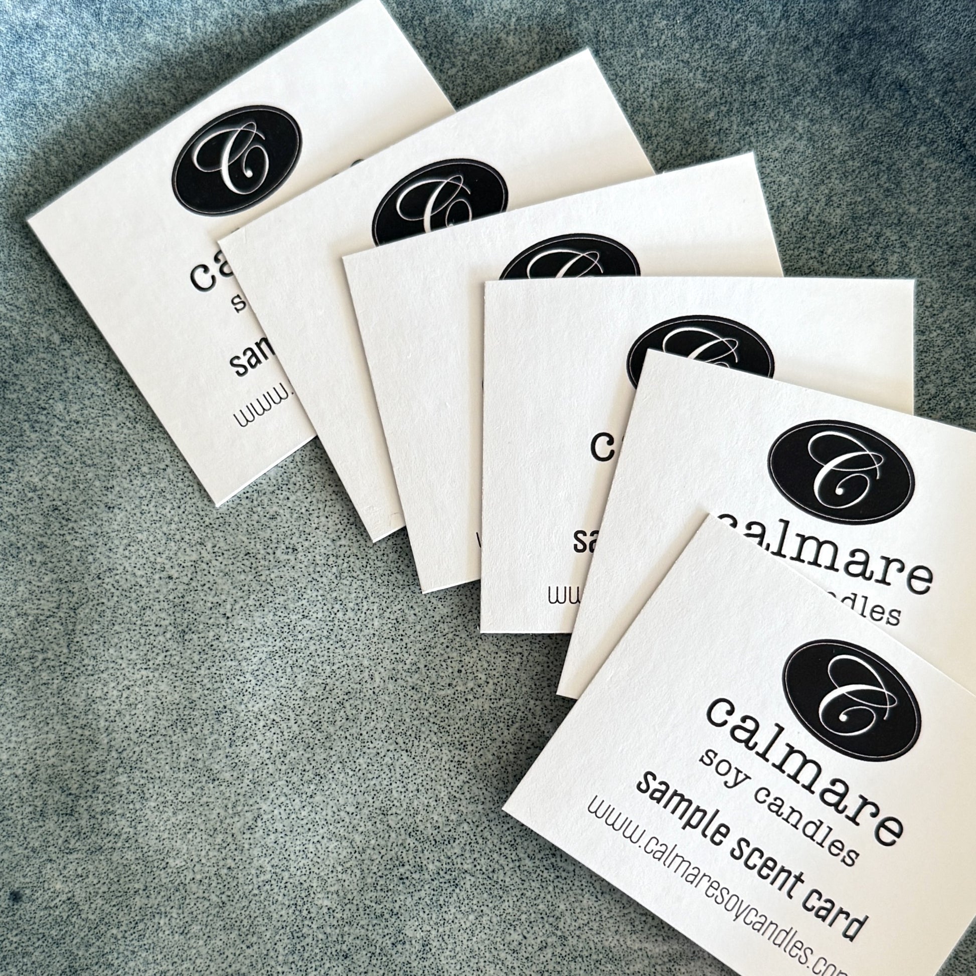 Our sample scent cards have been dipped in fragrance allowing you to test smell your chosen scents. This gives you the chance to try a variety of scents before purchasing your candle.