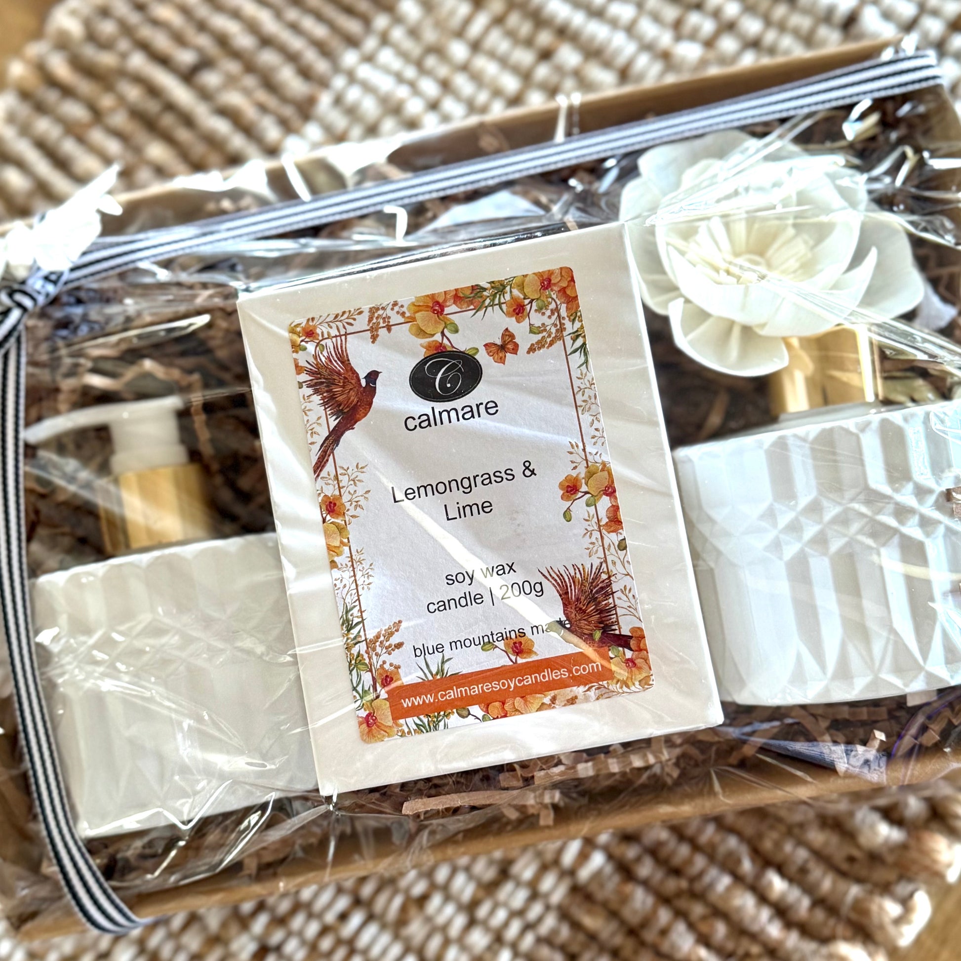 200g Soy Wax Candle, 200ml Diffuser + Flower Reed, 200ml Scented Goat's Milk Handwash